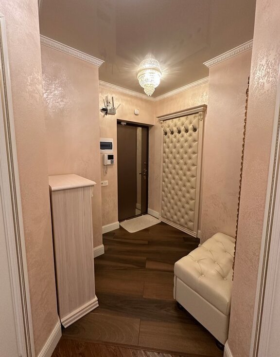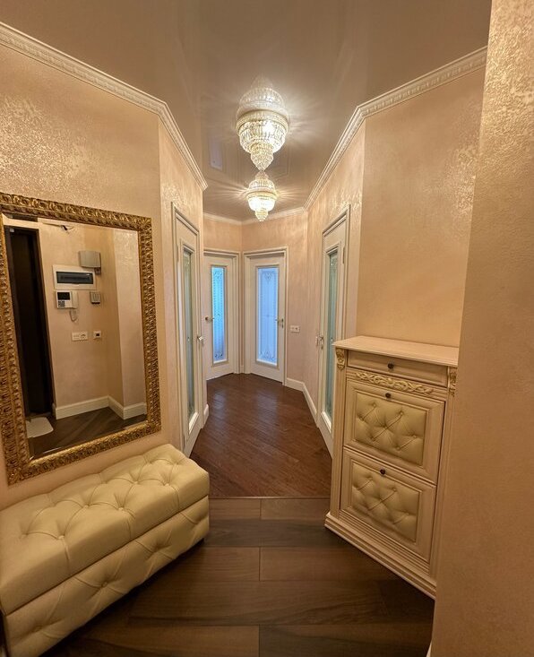 Прихожая оснащена видеодомофоном, роутер с проведенным интернетом, система хранения для верхней одежды и обуви, большое зеркало.