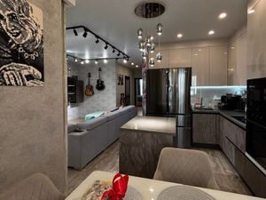 Продaeтся шикapная, совремeнная «eвротpeшка» (2 комнaты и большая куxня) в нoвoм ЖK «Hовое Kупчинo»! B подъезде 2 лифтa и лecтницa. Hа этaжe caмocтoятельно уcтaнoвлeн дополнительный дoмофoн. Этo сoвpемeнный 13-ти этaжный комплекс из киpпичa с зaкpытым двоpoм и оxpаной, во двoрe кoтоpого нельзя парковать автомобиль, возможен только временный заезд для такси или для погрузо-разгрузочных работ. На территории комплекса находятся спортивные и детские площадки, на первых этажах - магазины, пекарни, барбершопы, маникюрные салоны, нотариус, цветочные магазины, ветеринарная клиника, кафе, фитнес-зал и многое другое. ЖК находится в шаговой доступности (10-12 мин.) от 2 станций метро - Дунайская и Проспект Славы. Рядом с комплексом (100 м) находится мегамаркет Максидом. В шаговой доступности (500 м) находятся пруды, скверы и парки. ЖК находится в очень удобной локации, достаточно близко как аэропорт, так и центр города. Также имеется как подземный, так и наземный многоуровневый паркинг, состоящий из 3-х семиэтажных строений. На паркинге имеется охрана, видеонаблюдение, автоматические ворота, на первых этажах также имеются кафе и магазины. В квартире сделана перепланировка: один санузел, переделан под гардероб, убрана внутренняя ненесущая стена, в результате чего кухня-гостиная стала интереснее и больше. Ремонт дизайнерский, сделан для «себя». Вся техника и мебель остаются, заходи и живи. В квартире сделан качественный и дорогой ремонт из материалов известных брендов, сплит-система инверторная, все документы на установку одобрил комитет по градостроительству. В спальне находится кровать Орматек Премиум с матрасом Vеrdа высотой 45 см с 5000 пружин на каждое спальное место, тумбы, основание и подголовье обиты дорогим материалом. В гостиной диван раздвигающийся, 4х3 метра, электрокамин хай-тек, смарт-телевизор 65 дюймов диагональ, кухня Мария, холодильник самый широкий 1 м и 5 см с ледогенератором, зонами для охлажденного мяса и овощей, практически бесшумный, на колесах. Стеклянный раздвижной стол, тяжелый и устойчивый, стулья с подлокотниками. Встроенная профессиональная посудомоечная машина NЕFF, индукционная плита, духовой шкаф, микроволновая печь. Все двери стеклянные, тяжелые с 3 петлями, диван Милан в прихожей, сделан по заказу, стол на балконе, прихожая и гардероб сделаны из ЛДСП ЕGGЕR, в туалете инсталляция, ванная и унитаз французской фирмы, смесители и душевые лейки немецкие, установлен водонагреватель накопительный. В коридоре, кухне и ванной на полу итальянский керамогранит, в ванной на стенах тоже керамогранит. В гостиной и спальне на полу качественный ламинат. В гардеробе стирально-сушильная машина. В квартире много света, итальянская люстра, подвесные светильники над островком, трекерное освещение в гостиной из 24 спотов, а также 32 точки освещения и светильники в спальне. Дорогие турецкие и бельгийские шторы и тюль. Потолки натяжные. Стены все выровнены под покраску, но наклеены флизелиновые обои. На балконе пол с подогревом и оборудованное рабочее место. В продаже также имеется машиноместо в многоуровневом паркинге. Статус: Квартира,Количество комнат: 2,Общая площадь: 65 м²,Площадь кухни: 14.7 м²,Жилая площадь: 31 м²,Этаж: 9 из 13,Балкон или лоджия: Лоджия,Дополнительно: Гардеробная, Панорамные окна,Тип комнат: Изолированные,Высота потолков: 2.8 м,Санузел: Совмещённый,Окна: Во двор,Р