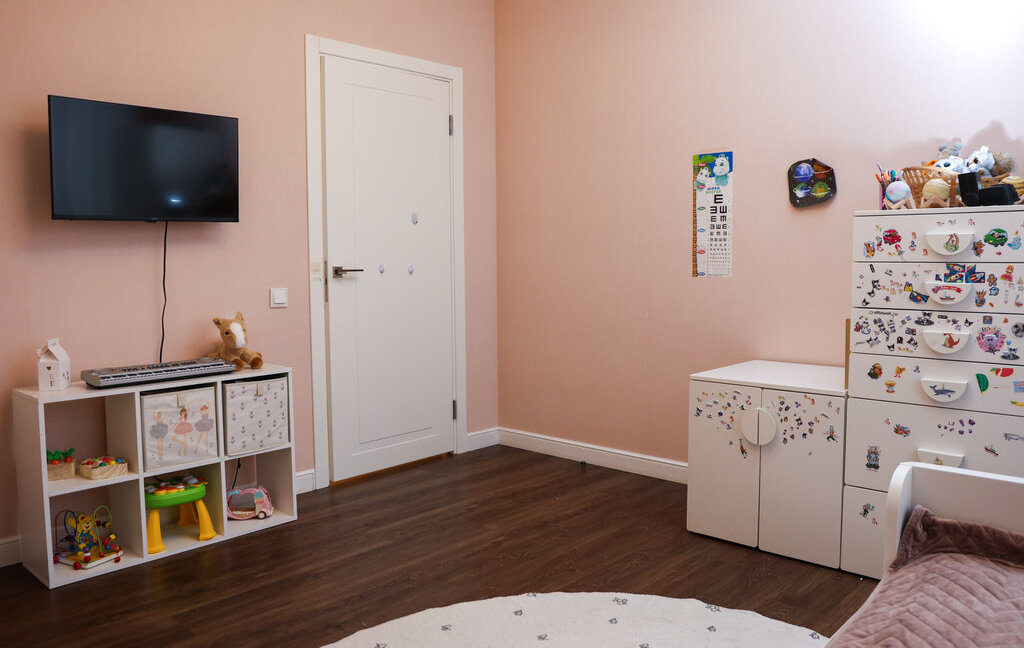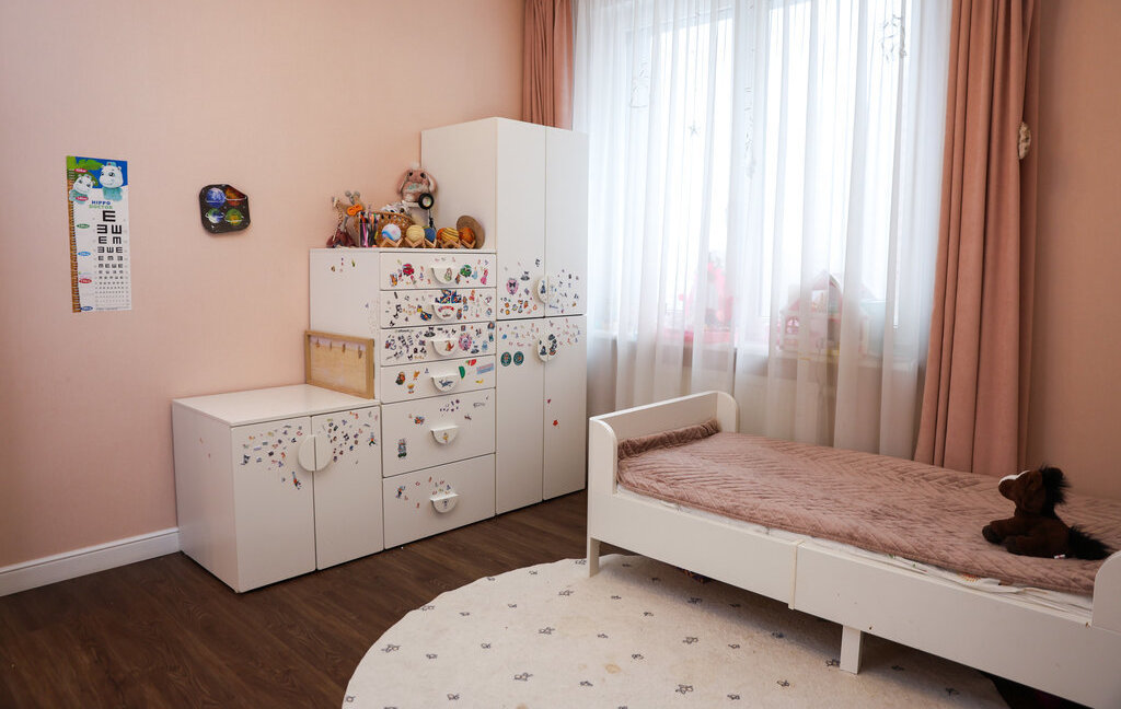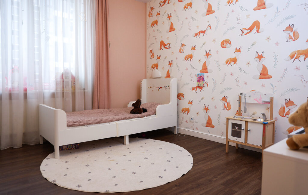 Стены окрашены высококачественной краской, устойчивой к мытью. Детская комната выполнена обоями;