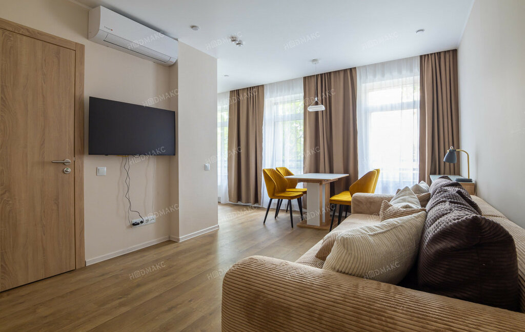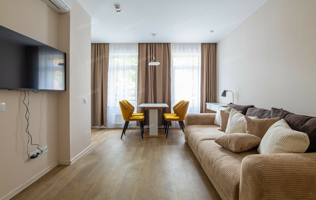 Планировка - спальная комната, просторная гостиная с оборудованной кухней (посуд.машина), санузел. Комфортабельная мебель, современная техника. Поблизости находится ресторан «Ognivo», кафе «Тарта» и продуктовый магазин, выставочный комплекс ГЭТ и Русский инженерный театр «АХЕ», Благовещенский сад.