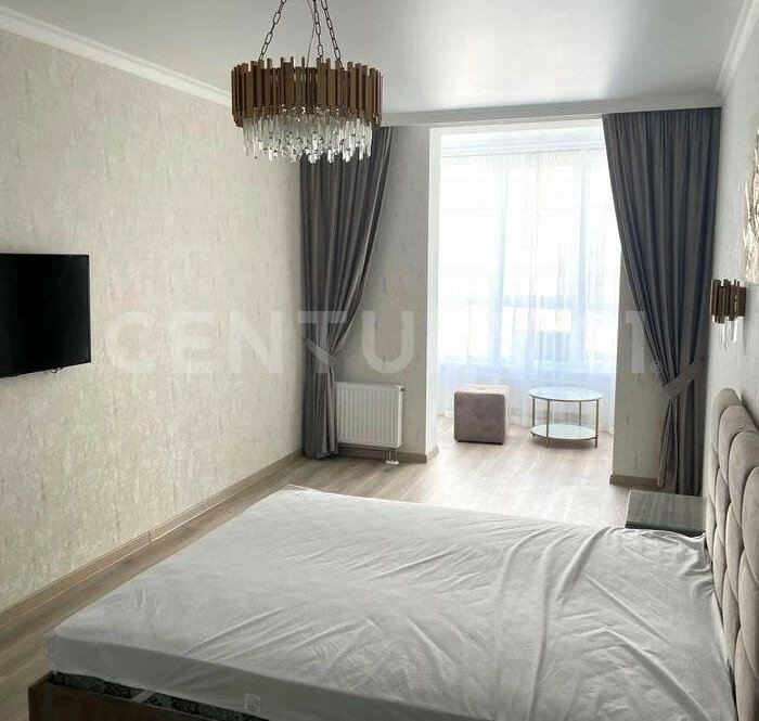 Просторная зона лоджии гармонично объединена с жилой зоной комнаты, создавая дополнительное пространство и обеспечивая превосходное освещение естественным светом в течение всего дня.