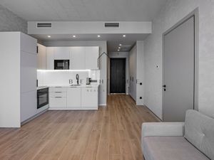 Просторная и светлая кухня-гостиная, изолированная спальня с рабочим местом, совмещенная ванная комната с душевой кабиной.