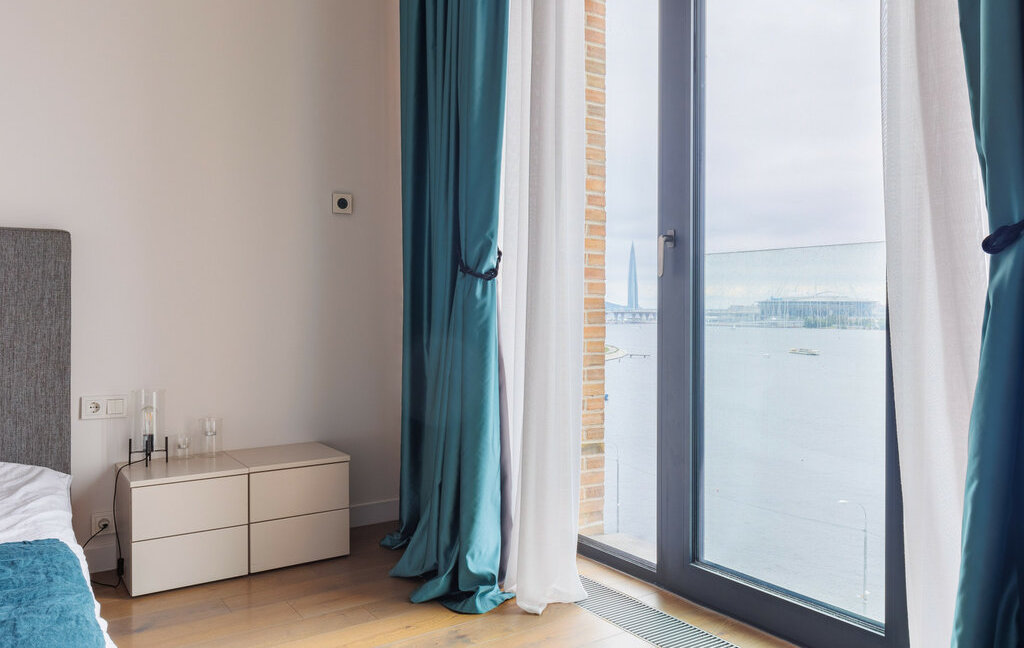 Предлагается в аренду на длительный срок стильная видовая двухкомнатная квартира с панорамным остеклением в лофт-квартале апарт-отеле бизнес-класса "Docklands" в Приморском районе по адресу: улица наб. Макарова, дом 60.