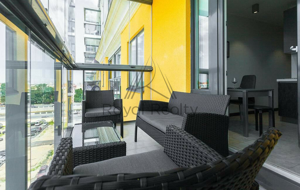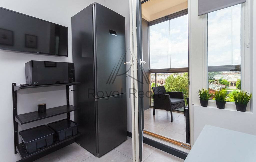 • Современная кухня, полностью оборудованная всей необходимой техникой; есть выход на второй балкон с садовой мебелью — идеальное место для утреннего кофе.