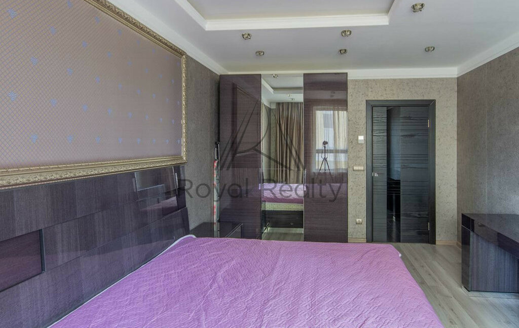 • Просторная спальня с большой кроватью, вместительным шкафом и выходом на лоджию.