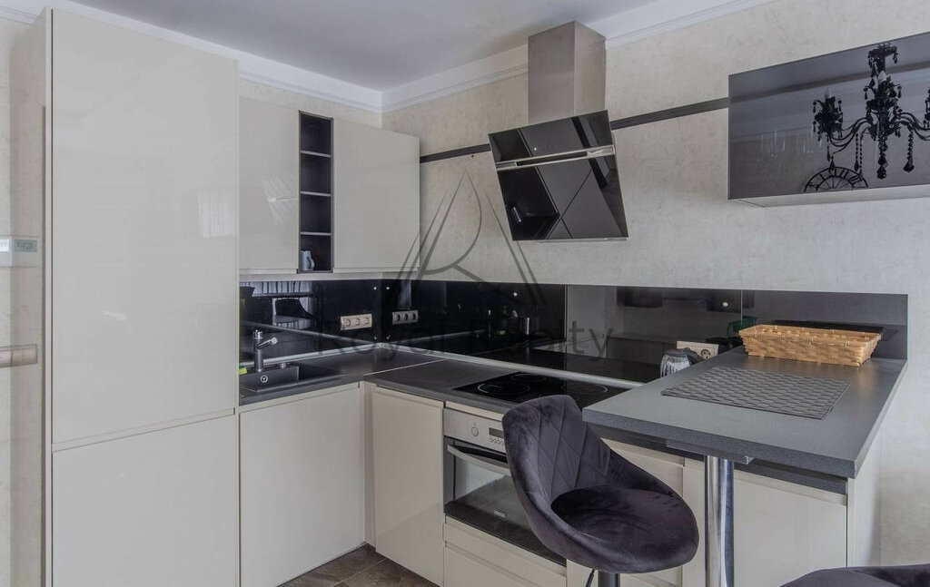 Современная кухня, полностью оборудованная всей необходимой техникой.