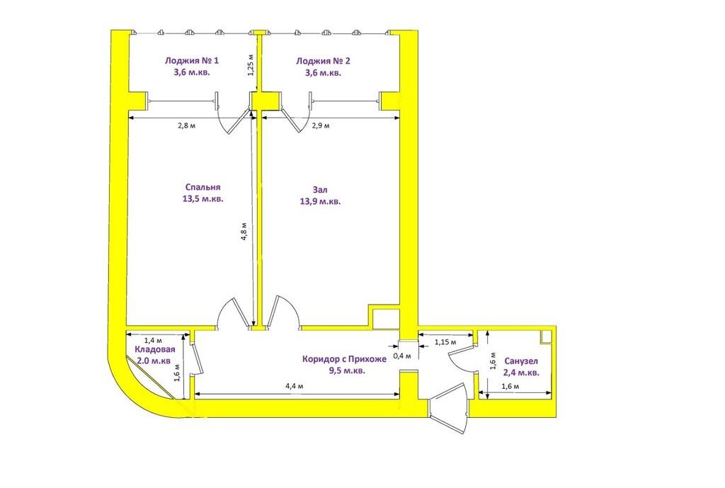 2-комнатная квартира: Санкт-Петербург, Наличная улица, 44к2 (51 м²)