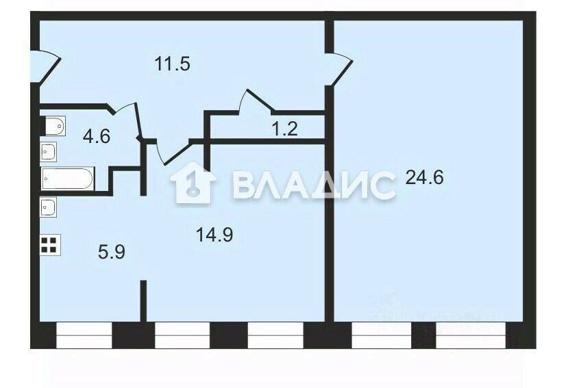 Квартира площадью 62,7 кв. м расположена на втором этаже пятиэтажного кирпичного дома по адресу: