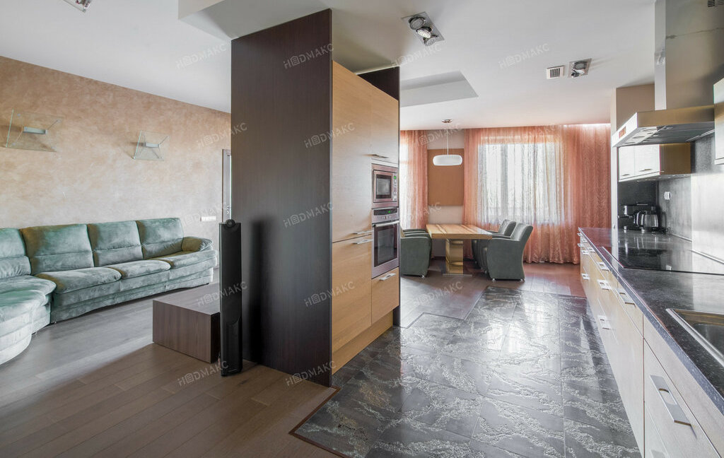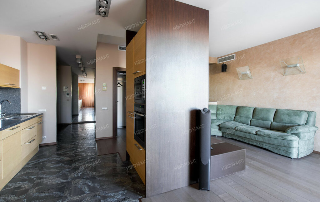 Преимущества квартиры:Просторная кухня-гостиная. Зона кухни оснащена всей необходимой бытовой техникой Miele.