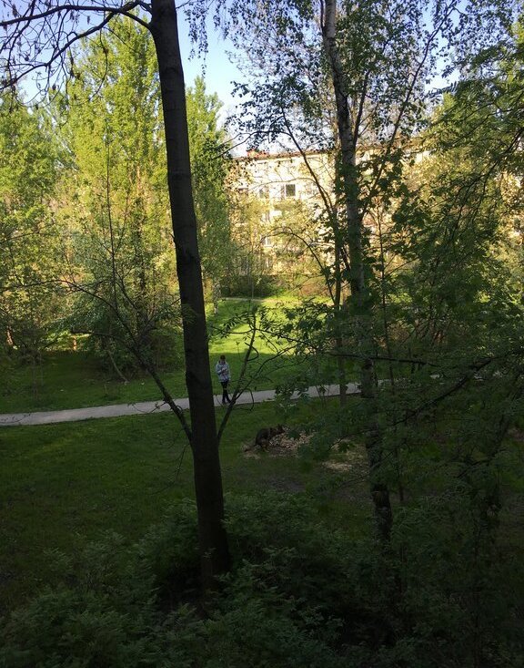 Окна выходят в сторону сквера. Много зелени, под окнами не ездят машины!