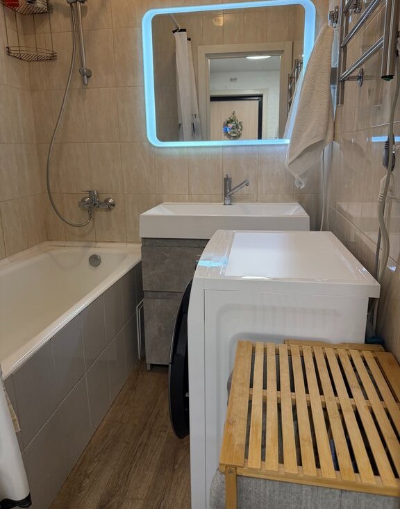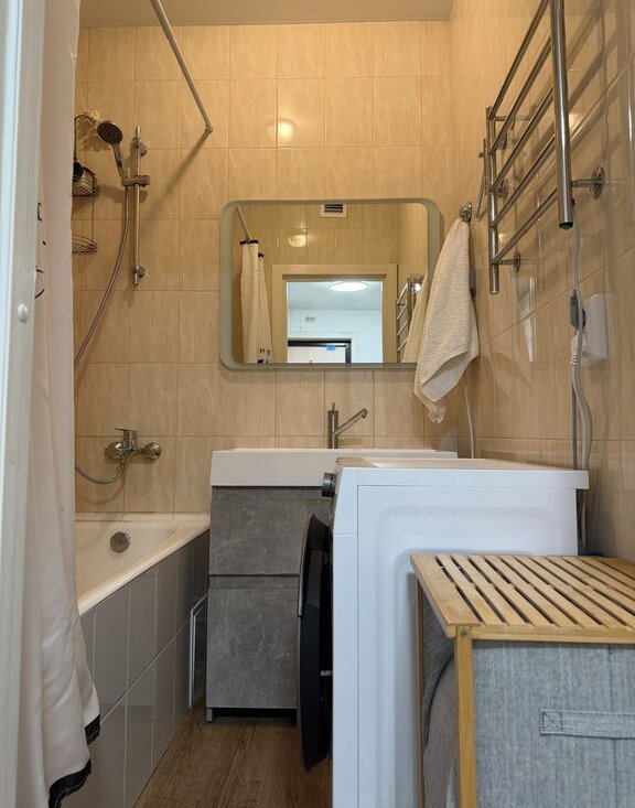 В квартире выполнен современный ремонт, с использованием качественных отделочных материалов. Отличное состояние жилья избавляет вас от необходимости вкладывать дополнительные средства сразу после приобретения недвижимости. Функциональная кухня оборудована необходимой бытовой техникой