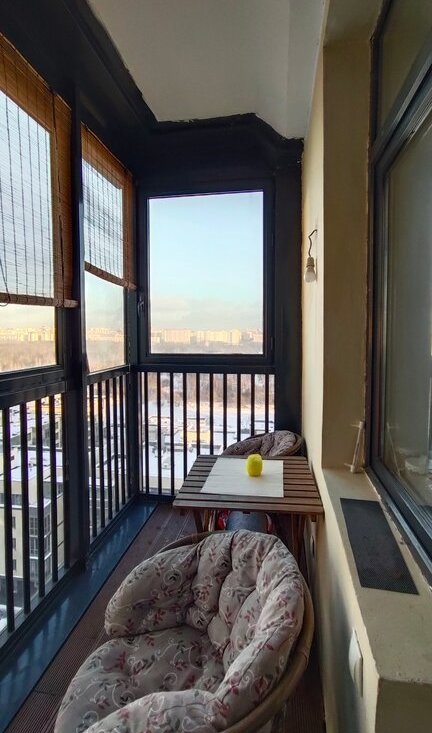 Приличное состояние квартиры. Оборудованная кухня, застеклённый балкон с шикарным видом. Основная ванная с окном. Есть второй санузел.