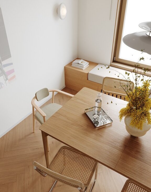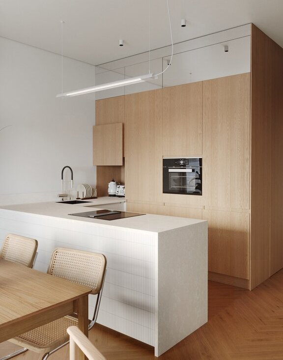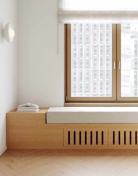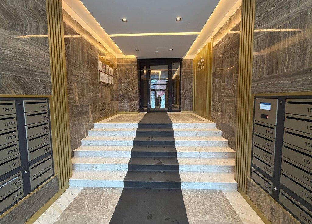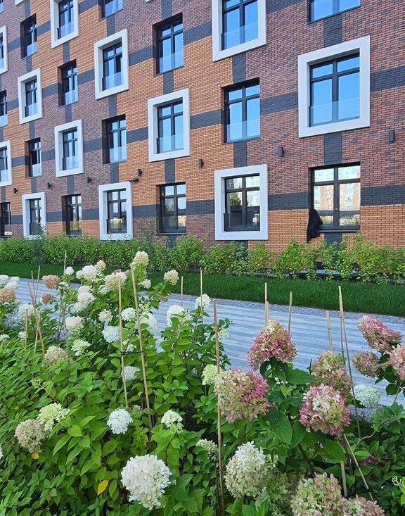Дом выделяется качественными материалами и инженерией: фасады с клинкерной облицовкой, подсветка территории и архитектуры, высокие потолки 3 м. В квартире — дубовые окна, выходят на две стороны.