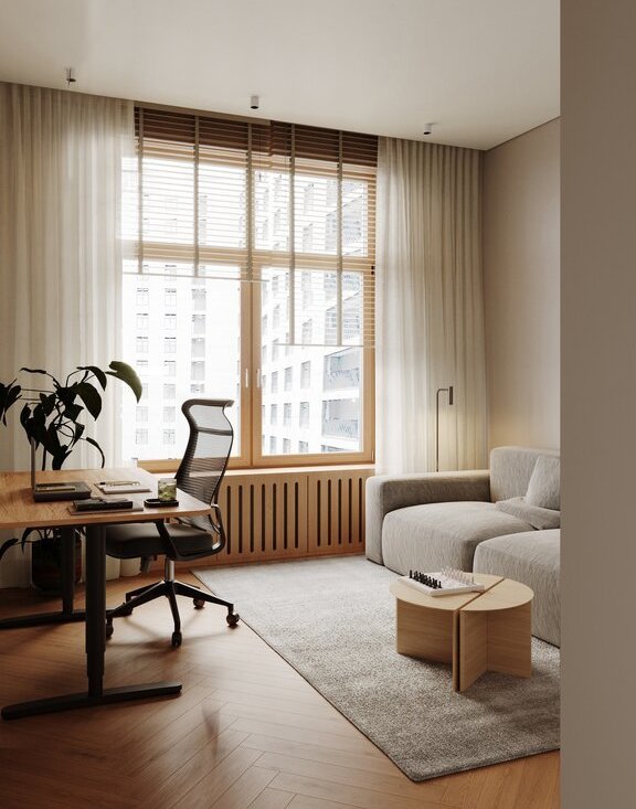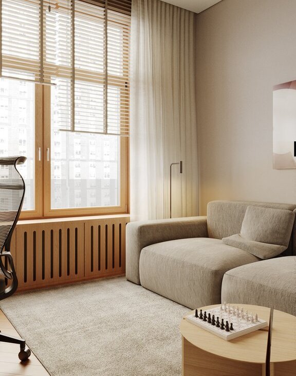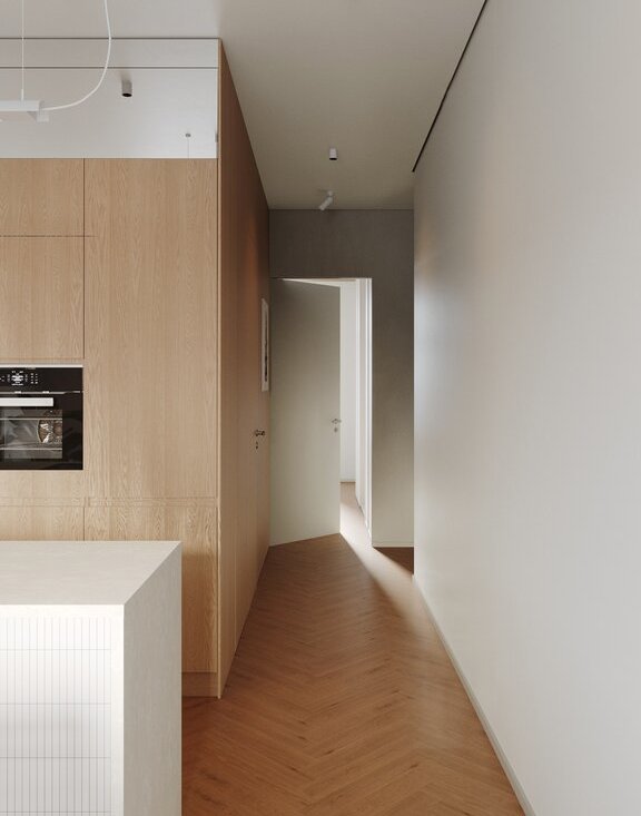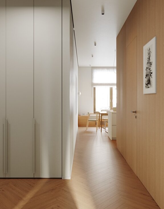 Квартира без отделки, на фотографиях представлена часть визуализаций дизайн-проекта.