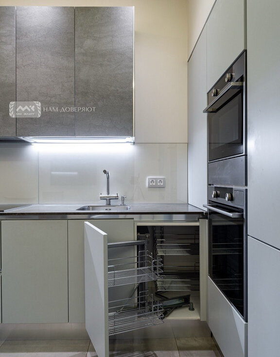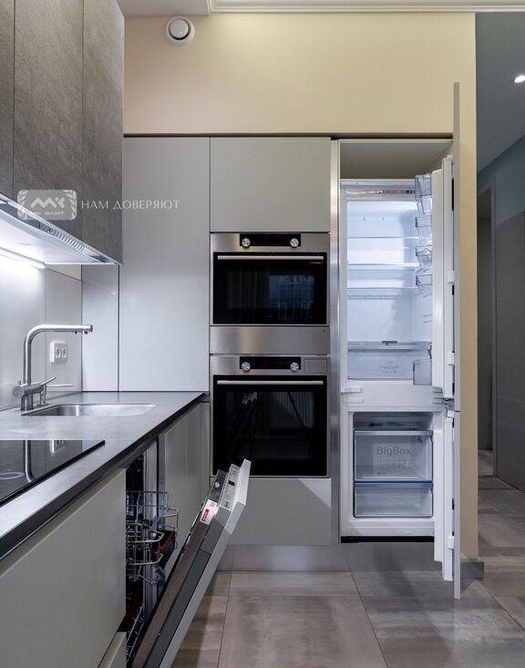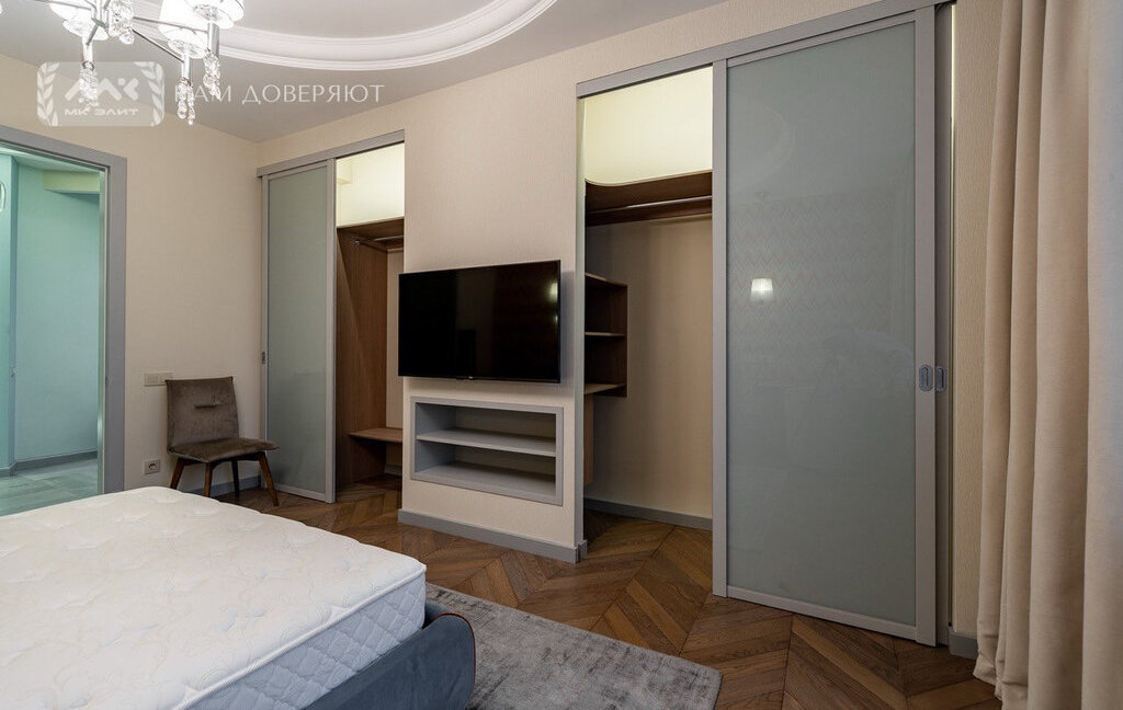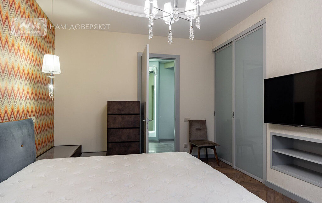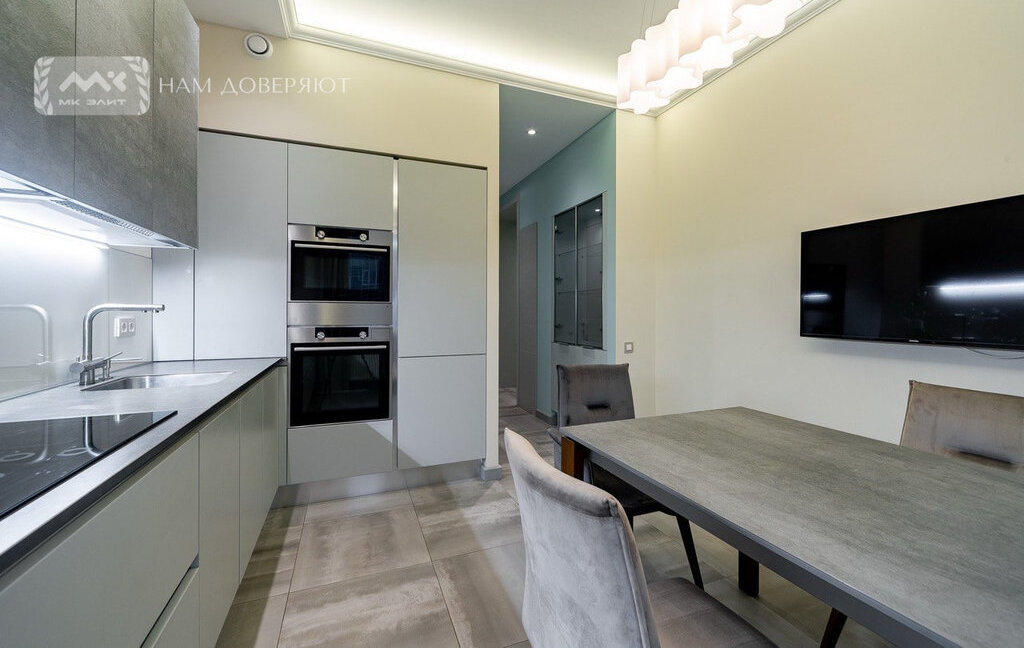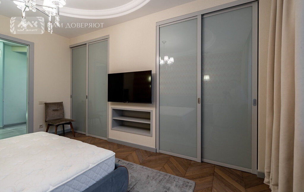 Квартира оснащена всей необходимой мебелью и техникой (микроволновая печь с функцией вакууматора, духовой шкаф, посудомоечная машина, стиральная и сушильные машины). В спальне 2 гардеробные, что обеспечивает комфортное хранение личных вещей.