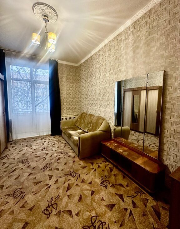 Площадь квартиры 55 метров, кухня 10 метров, две большие изолированнее комнаты 20 и 14 метров, прихожая, раздельный санузел, изумительный, балкон. Есть все необходимое для проживания: тахта, диван, шкафы, прихожая, кухня с бытовой техникой.