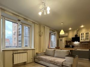 Двухкомнатная квартира, комнаты 34+18, кухня 8 кв.м. Есть вся необходимая для проживания мебель и техника: холодильник, посудомоечная машина, микроволновая печь, стиральная машина.