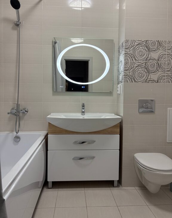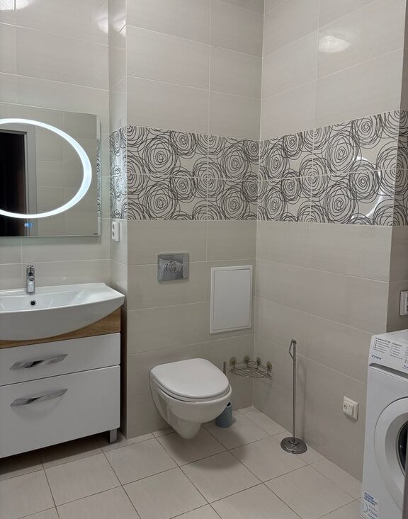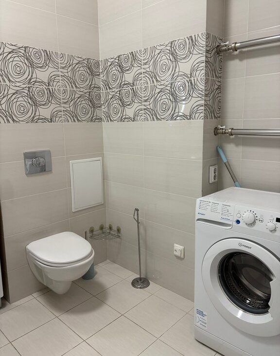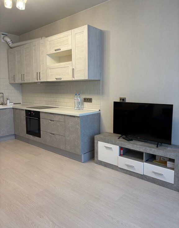 Встроенная техника: холодильник, посудомоечная машина, СВЧ, варочная панель и духовая печь, стиральная машина (в кухне-гостиной и спальне).