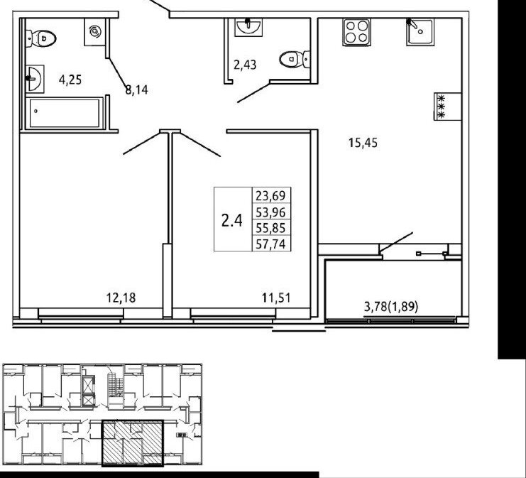 Два санузла, что обеспечивает дополнительное удобство. Лоджия позволяет наслаждаться свежим воздухом.