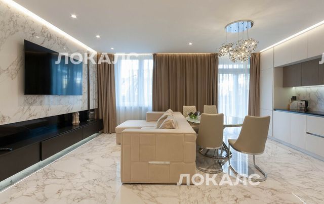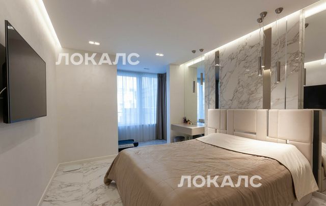 В квартире сделан свежий дорогостоящий качественный дизайнерский ремонт. Установлена вся необходимая техника. Окна спальни выходят в тихий двор, спальня изолирована. Стоит двуспальная кровать с ортопедическим матрасом, большой телевизор в спальне и гостиной, винный шкаф, беговая дорожка, духовой шкаф совмещенный с СВЧ печью, сейф.