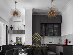 Кухня объединена с просторной гостиной — это идеально выверенное пространство, где каждая деталь продумана: премиальные материалы отделки, техника высокого класса, эстетика, которая не кричит, а подчёркивает статус.