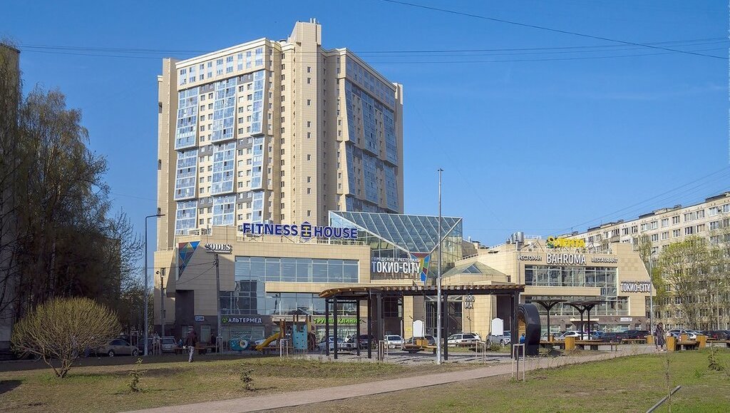 Дом - центр притяжения активности - супермаркеты, средняя школа, несколько детских садов (есть и частные), детская клиника и детские лечебные кабинеты. Поликлиника Андромед - во дворе дома. Тут же огромный "Fitness house" с бассейном (также в 1.3 км от дома есть еще один - "Молот", Невский ТЦК), сети ресторанов, огромное количество магазинов от "О'кей" до десятков торговых точек в соседних домах.