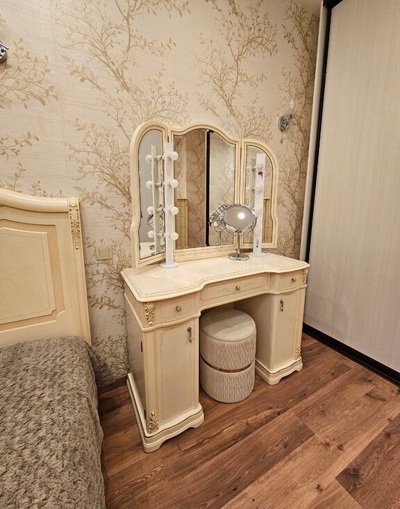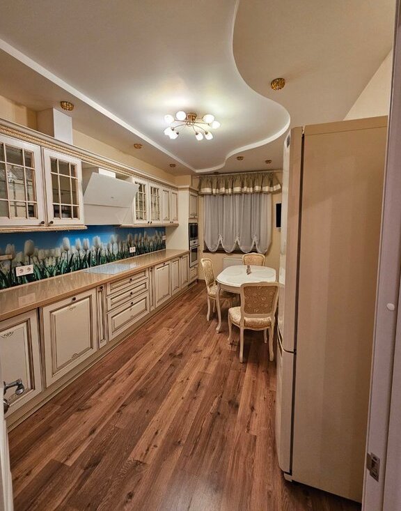 В квартире выполнен евроремонт, комнаты полностью меблированы. На кухне есть вся необходимая техника: холодильник, посудомоечная машина(60 см) и телевизор. В ванной комнате установлена ванна, а также имеется стиральная/сушильная машина Miele.