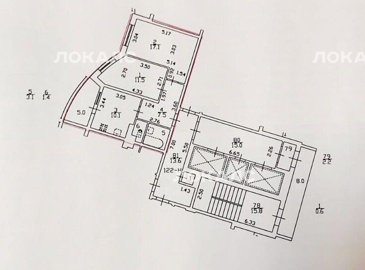 Комнаты изолированные: 17,1 м² и 11,5 м²