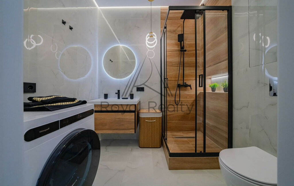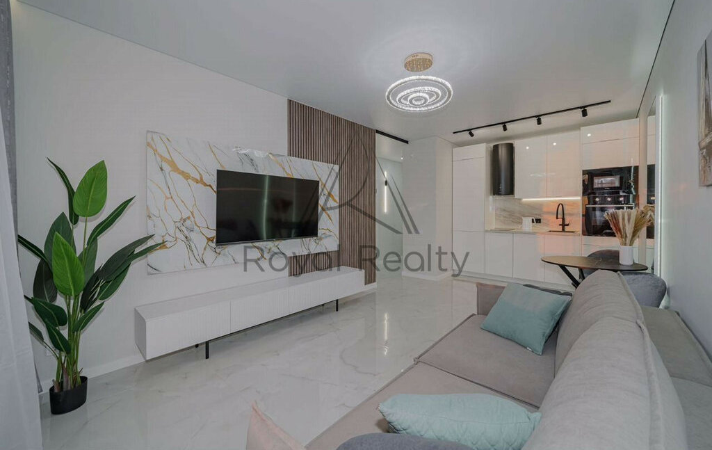 Квартира полностью укомплектована и готова к заезду жильцов, есть вся необходимая техника: стиральная и посудомоечная машина, кондиционер, духовой шкаф и телевизор.