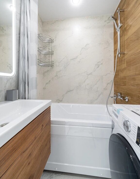 * Стиральная и посудомоечная машины встроены и готовы к использованию.