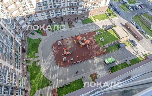 Одна из комнат с балконом, выходящим во двор, а другая с панорамными окнами и потрясающим видом на центр Петербурга, Лахта Центр и стадион «Зенит». С высоты 14-го этажа открывается прекрасный вид на закат и салюты.