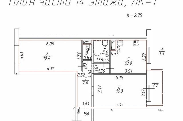 💃 Комната: просторная распашонка (18,4 м² + 16,3 м²); кухня площадью 10,9 м²