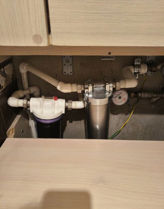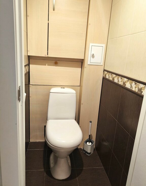 Санузел раздельный, плитка, фильтры на горячую и холодную воду.