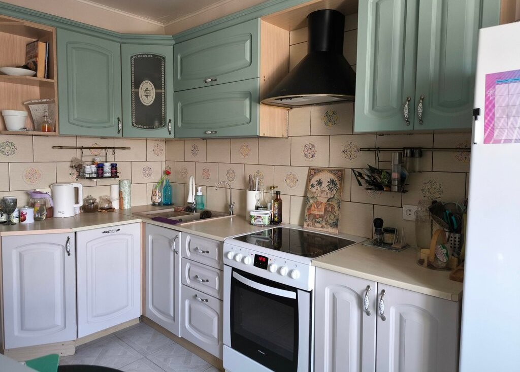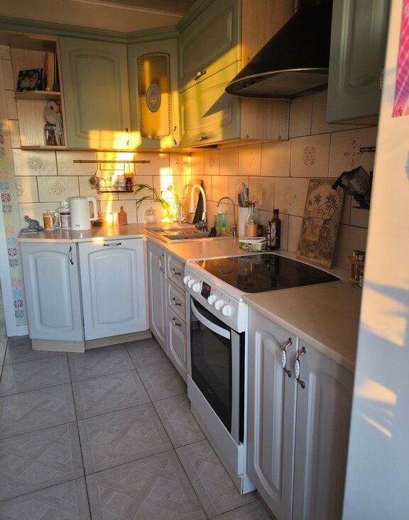Просторная кухня 10,8 м2, поместится вся семья. Мебель и встроенная техника-остаются новому владельцу.