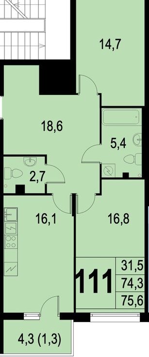 + просторный балкон — 4,3 м² (можно переоборудовать в рабочую зону или объединить с кухней)
