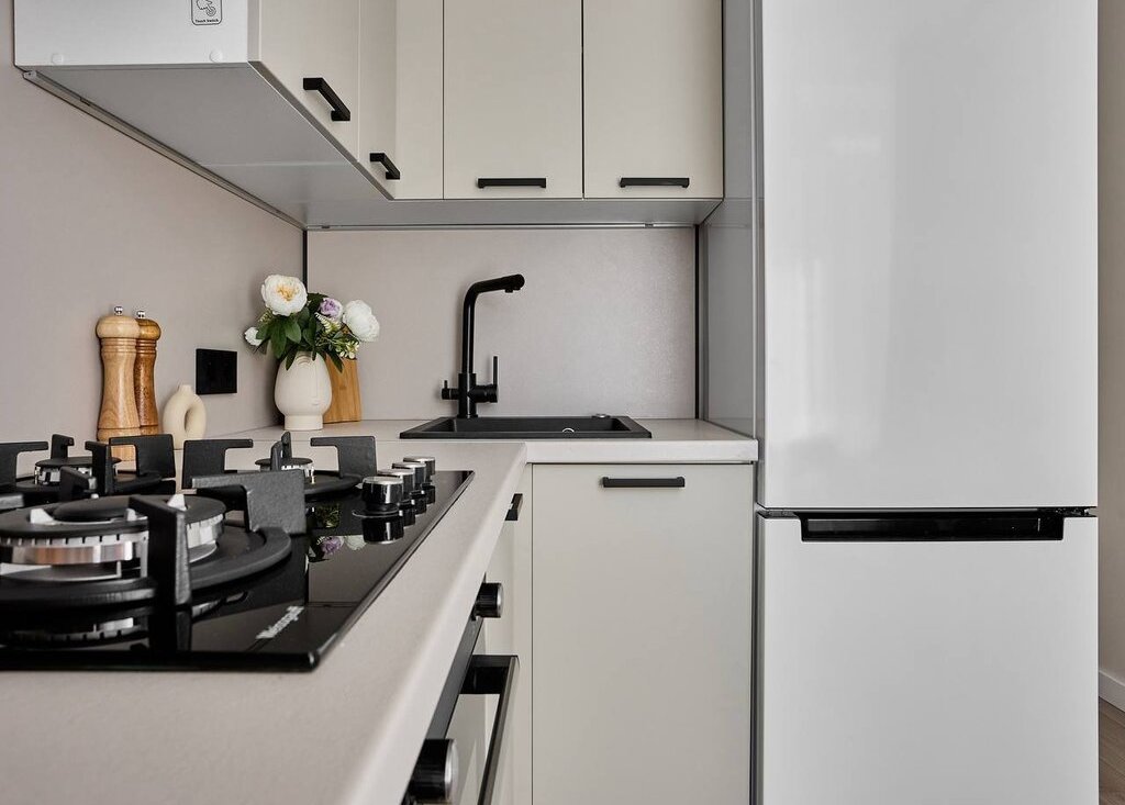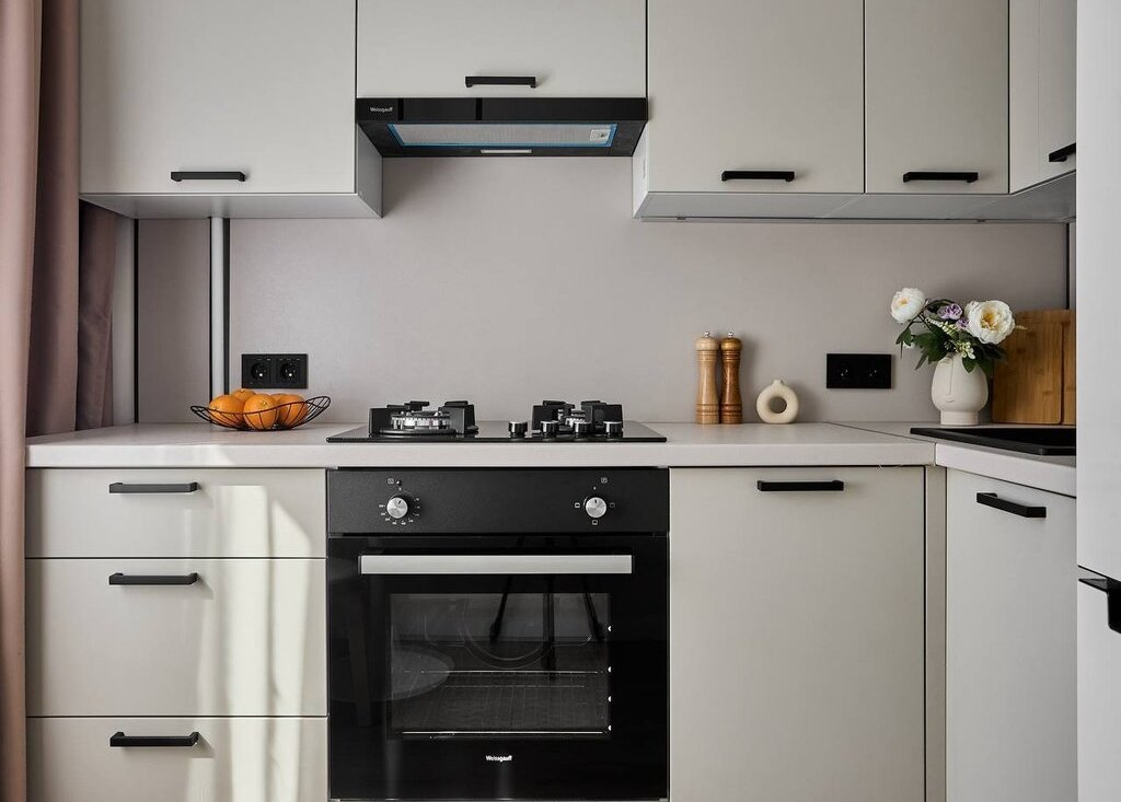 На кухне дополнительно установлен питьевой фильтр аквафор и измельчитель бытовых отходов, облегчающий готовку.