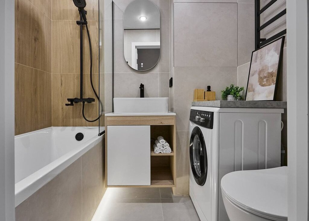 Установлены новые стиральная машинка, холодильник, духовой шкаф, встроенная посудомоечная машина, варочная панель, вытяжка, умная душевая система.