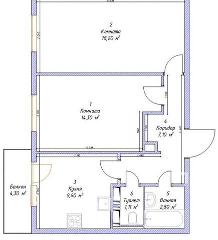 2-к кв. Санкт-Петербург ул. Дыбенко, 13К2 (54.26 м²)