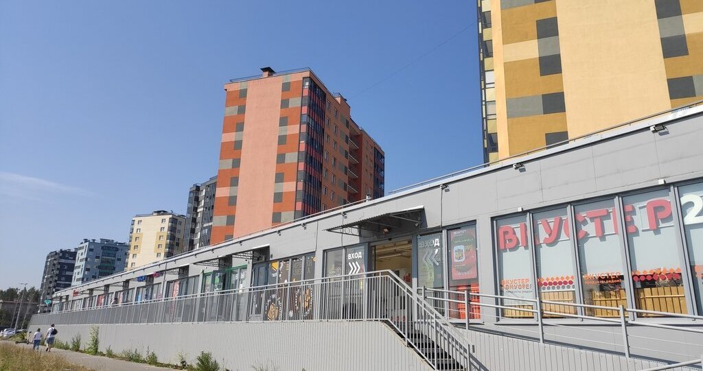 Рядом большой продуктовый магазин, и много магазинов сопутствующих товаров.