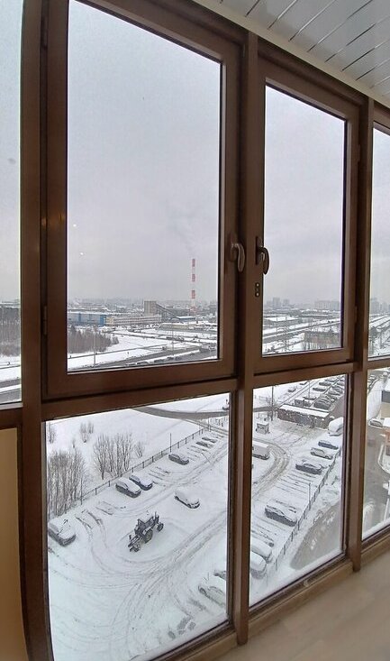 Два балкона с окнами в пол.
