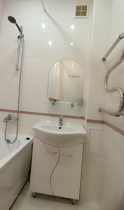 Ванная и туалет раздельные. Стиральная машина-автомат удобно расположена в туалетной комнате.