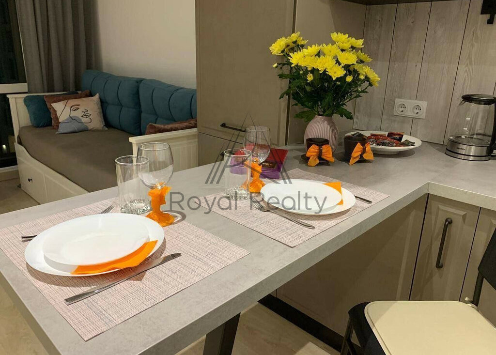 Апартаменты находятся в центре Санкт-Петербурга в апарт комплексе YЕS Маrаtа, который наполнен множеством, таких как подземный паркинг, большая зона коворкинга, лаунж зоны, детские площадки, фудкорт, магазины, бары и кафе с ресторанами.