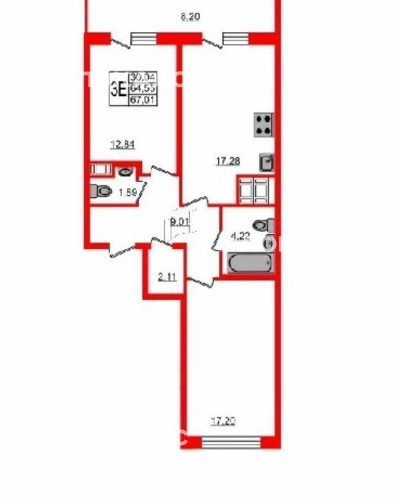 2-комнатная квартира: Санкт-Петербург, Среднерогатская улица, 13к1 (65 м²)