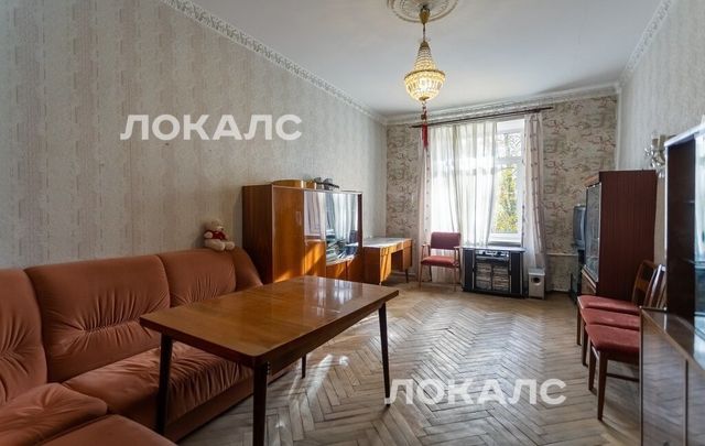 Продается двухкомнатная квартира на третьем этаже кирпичного сталинского дома, построенного в 1956 году. Общая площадь квартиры составляет 56.5 кв. м, из них жилая — 35.77 кв. м, кухня — 8.14 кв. м. Высокие потолки 3.12 метра создают ощущение простора и свободы. Дом расположен в шаговой доступности от метро, до которого всего 5 минут пешком.