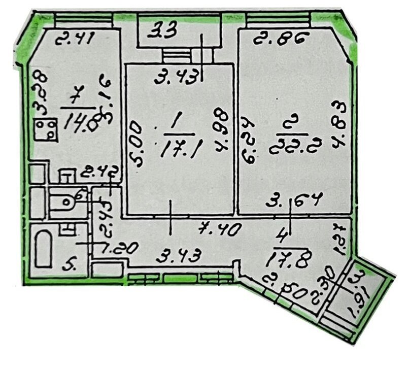 2-комнатная квартира: Санкт-Петербург, Большой Сампсониевский проспект, 77 (70.2 м²)