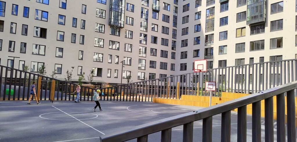 Во дворе дома благоустроенная детская и спортивная площадки, озеленение и зоны отдыха.