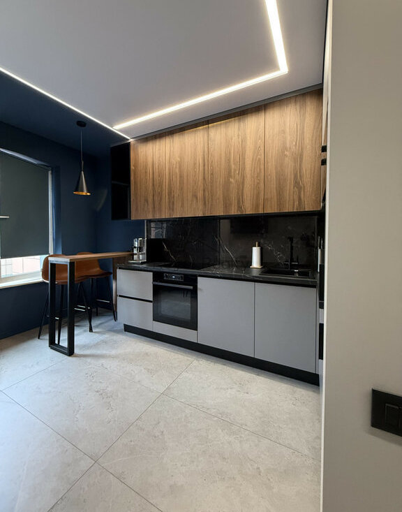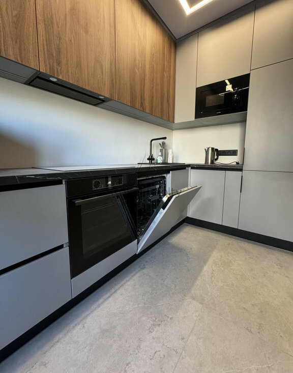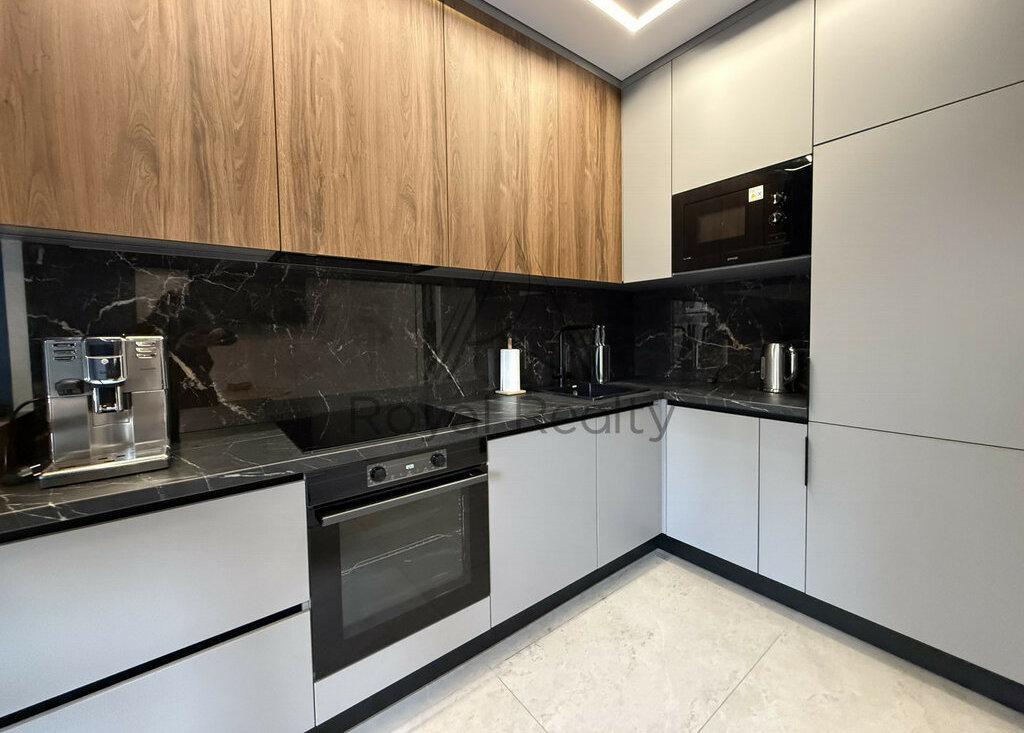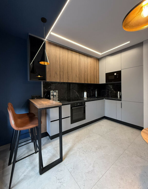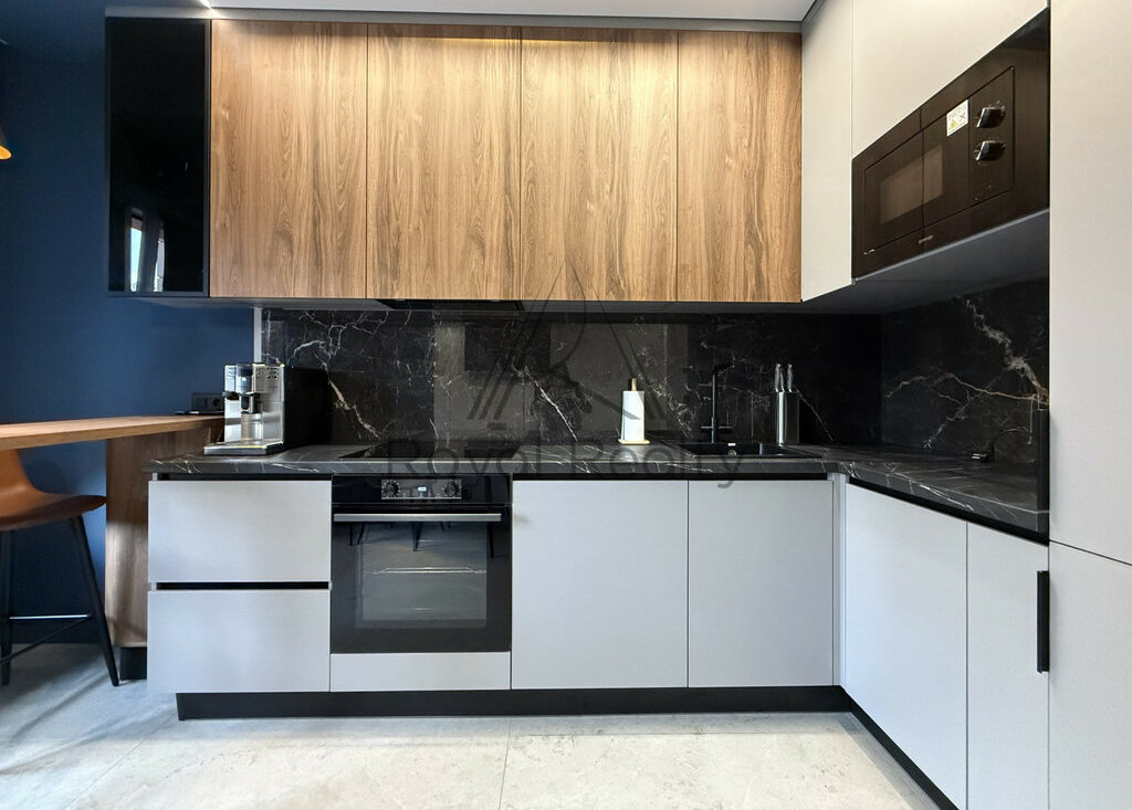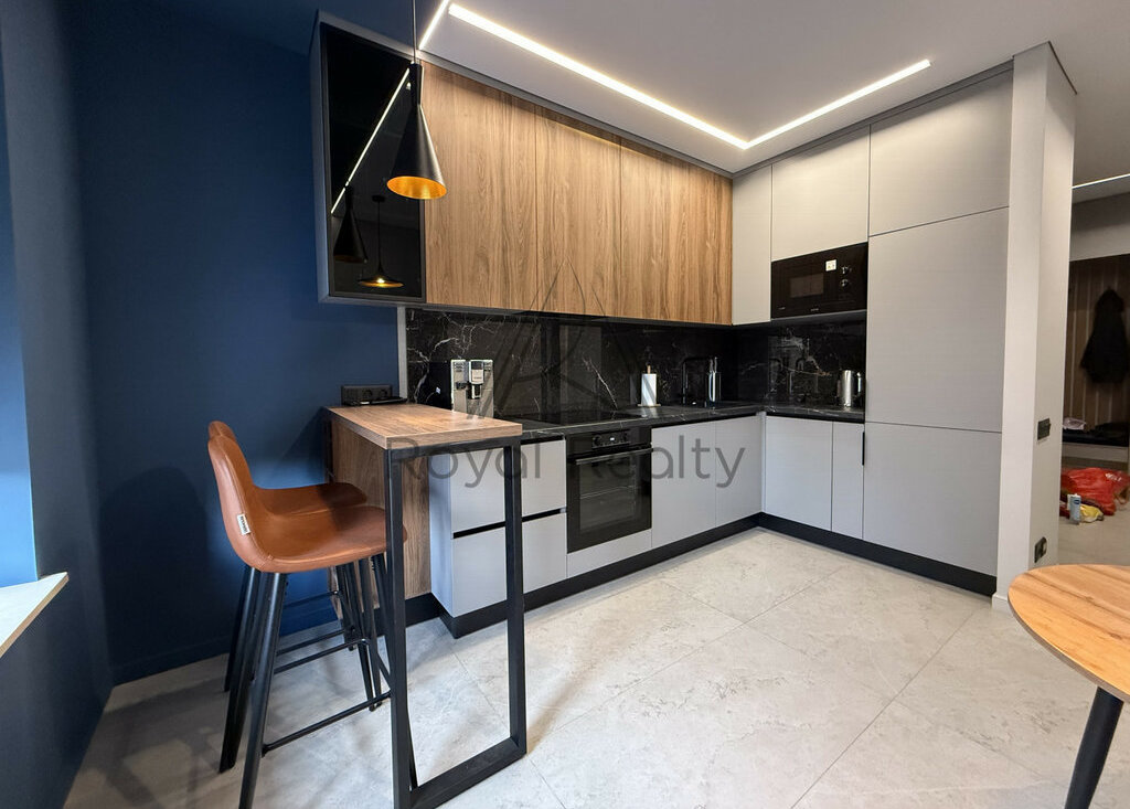 Уютная просторная кухня, в которой есть все для комфортного проживания: варочная панель, духовой шкаф, микроволновая печь, посудомоечная машина, чайник, кофемашина. Дополнительно выделена барная зона, где можно комфортно завтракать или наслаждаться вечером с друзьями.