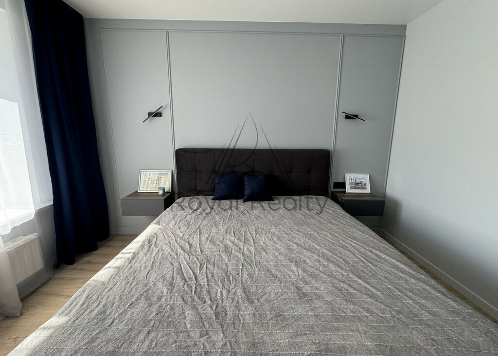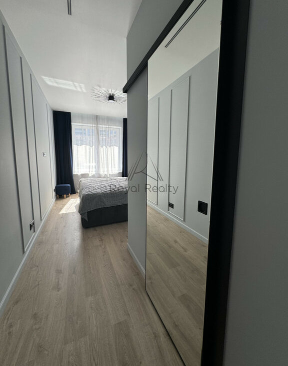 Квартира в отличном состоянии, сделан качественный дизайнерский ремонт. 2 полноценные изолированные комнаты: спальня с гардеробной и гостиная с балконом.