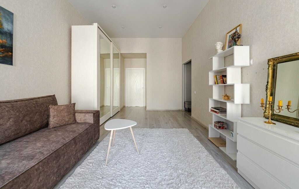 Планировка с просторной гостиной, большой спальней и отдельной кухней. Совмещенная ванная комната.