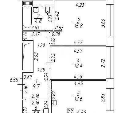 2-комнатная квартира: Санкт-Петербург, улица Челюскина, 10 (59 м²)